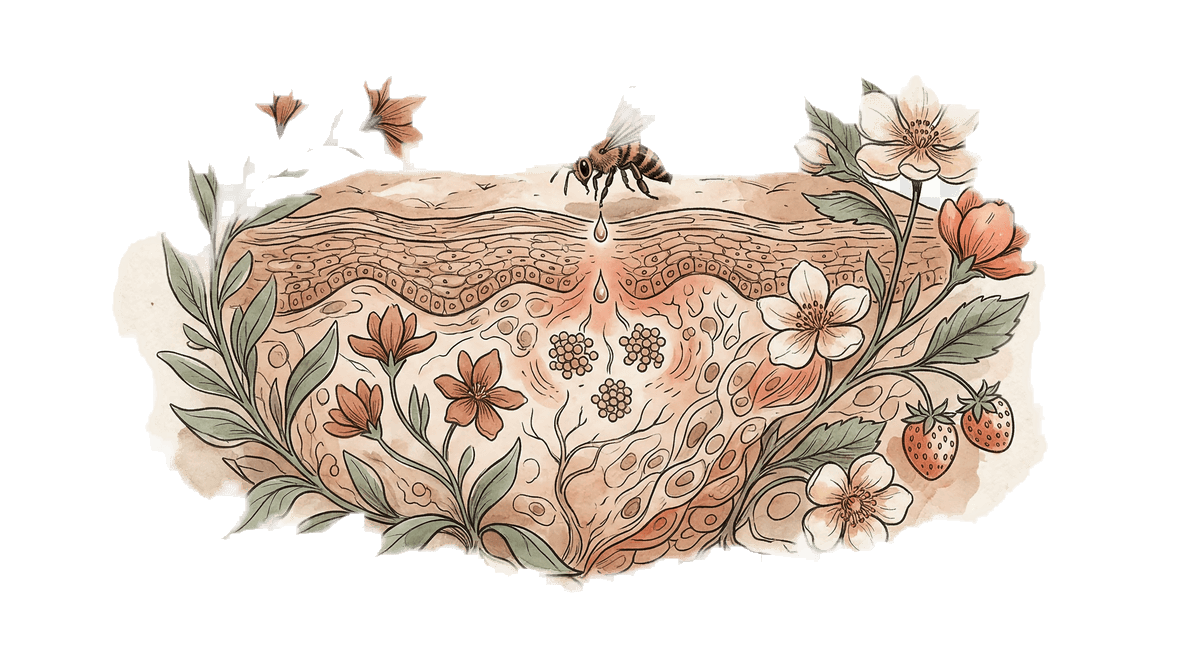 Bee venom skincare works through a counterintuitive mechanism: controlled micro-inflammation. The primary active compound, melittin (a 26-amino-acid peptide comprising 50% of dry bee venom), triggers a mild inflammatory response in the skin. The body responds by increasing blood flow, stimulating collagen production, and releasing anti-inflammatory compounds to resolve the reaction. A 2015 randomized controlled trial by Han et al. at Kyung Hee University showed that a bee venom serum reduced total wrinkle count by 57% and wrinkle depth by 38% over 12 weeks compared to placebo. The catch: this mechanism requires careful dosing. Too little does nothing. Too much causes genuine inflammation, swelling, and potential allergic reactions.