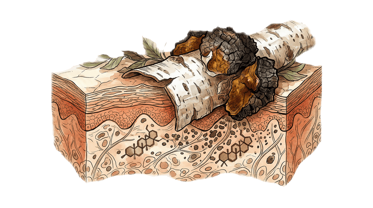 The extract is chemically complex. Beta-glucans, inotodiol, and lanosterol contribute to the immunomodulatory and antioxidant profile. The challenge is that most of these compounds are too large for stratum corneum penetration.