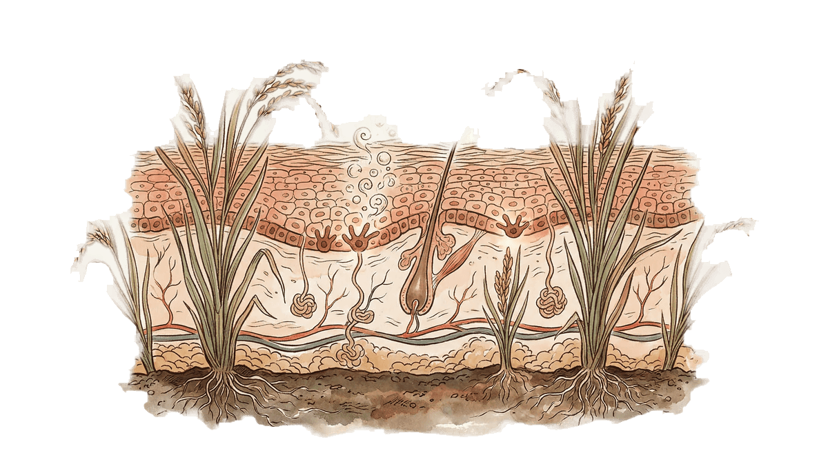Rice bran contains glucosylceramides that are structurally similar to human skin ceramides. They fill gaps in the lamellar lipid structure and reduce transepidermal water loss.